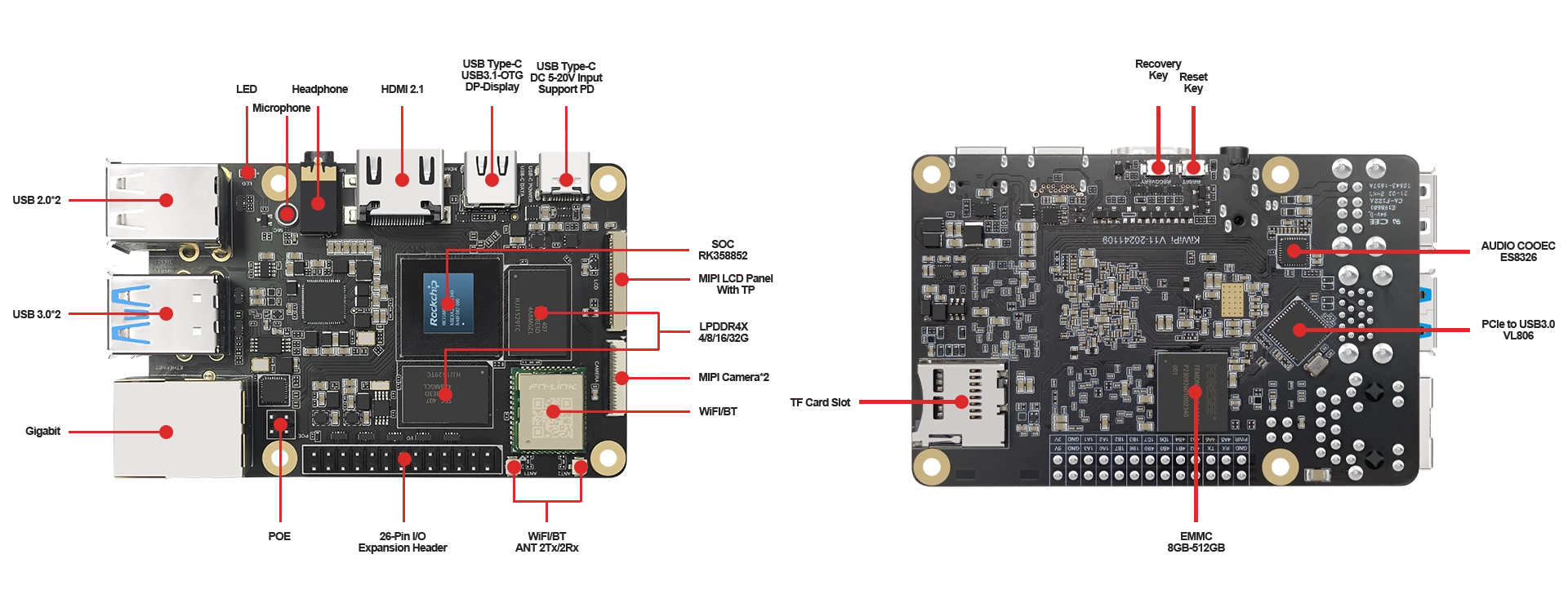· Rockchip RK3588S, 8nm process